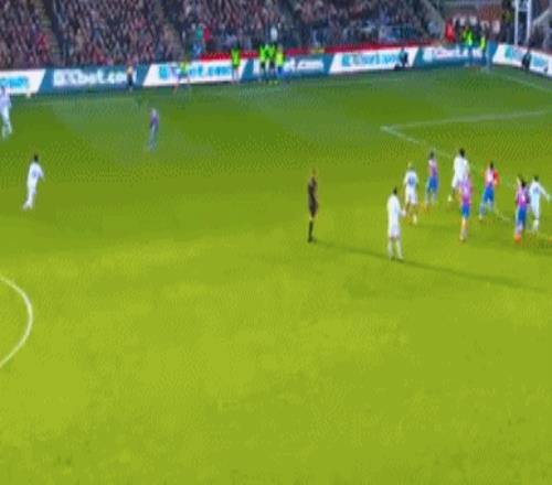 曼联的任意球,B费将球吊入禁区,齐尔克泽胸部停球,小角度左脚凌空抽射得手,曼联1-1扳平!