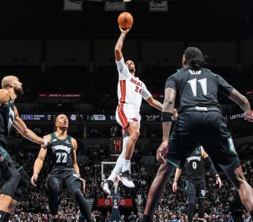 首节比赛,爱德华兹和鲍威尔上来各命中2记三分,阿德巴约突破打进,维金斯三分也进,热火取得13-6领先,森林狼随后展开反扑,戈贝尔内线暴扣,希罗上来三分命中,热火还是占据主动,里德最后三分命中,首节森林狼27-29落后。