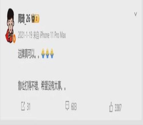 赛后,周琦曾在微博为队友鸣不平,指出广告牌设置存在安全隐患。